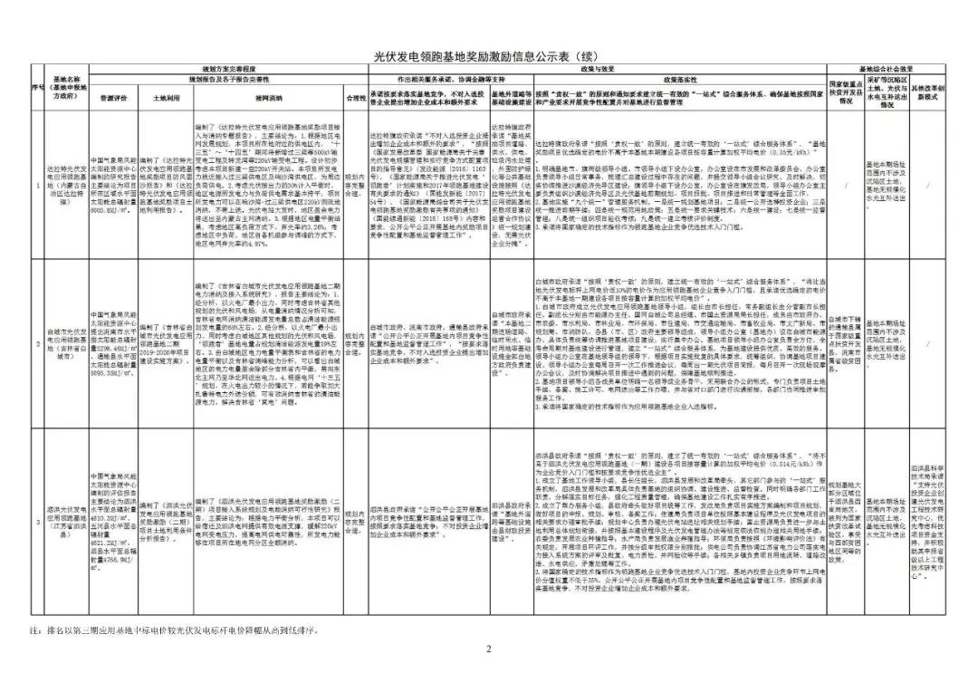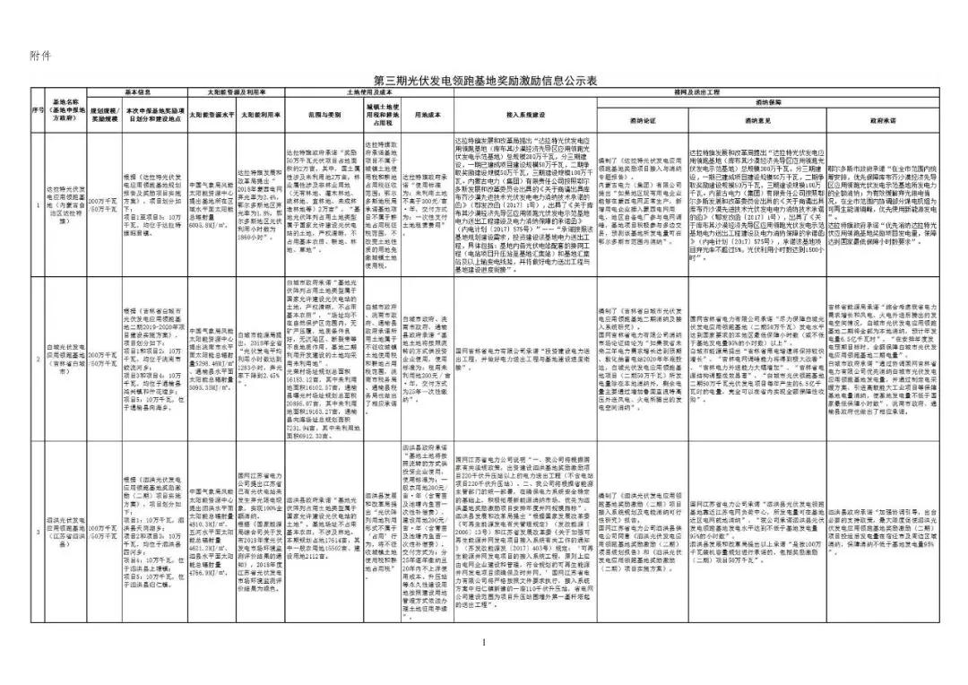 附件:光伏發(fā)電領(lǐng)跑基地獎勵激勵信息公示表