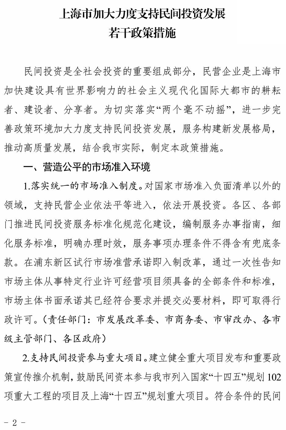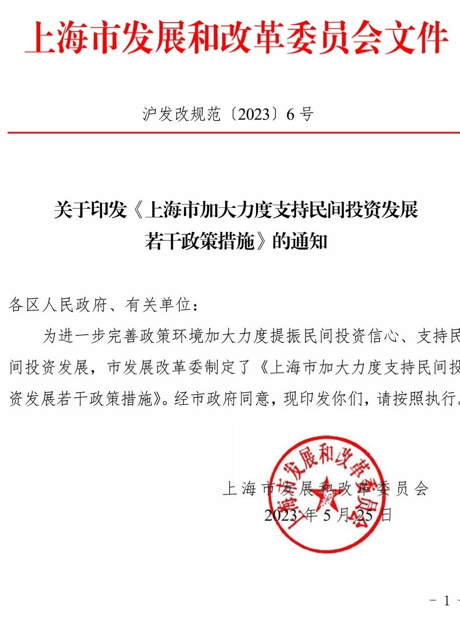 5月30日,上海發(fā)改委印發(fā)《上海市加大力度支持民間投資發(fā)展若干政策措施》。