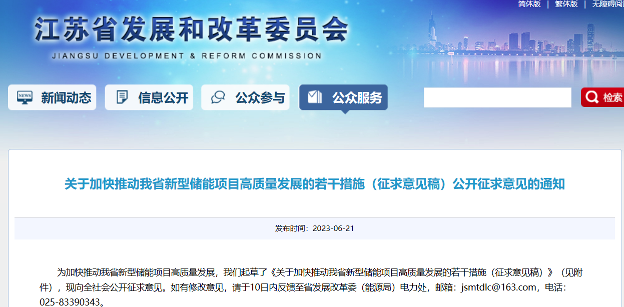 關于加快推動我省新型儲能項目高質量發(fā)展的若干措施(征求意見稿)公開征求意見的通知