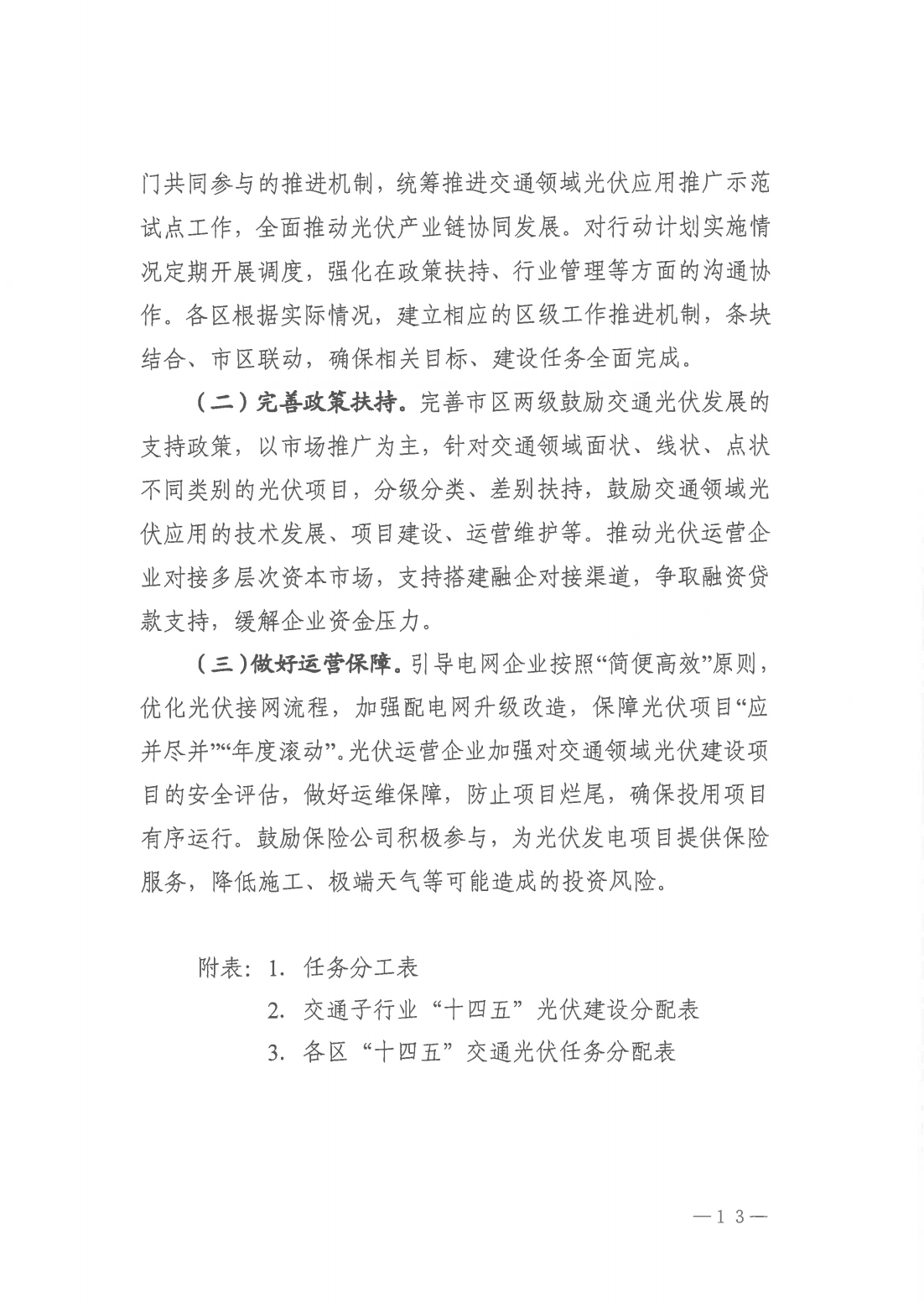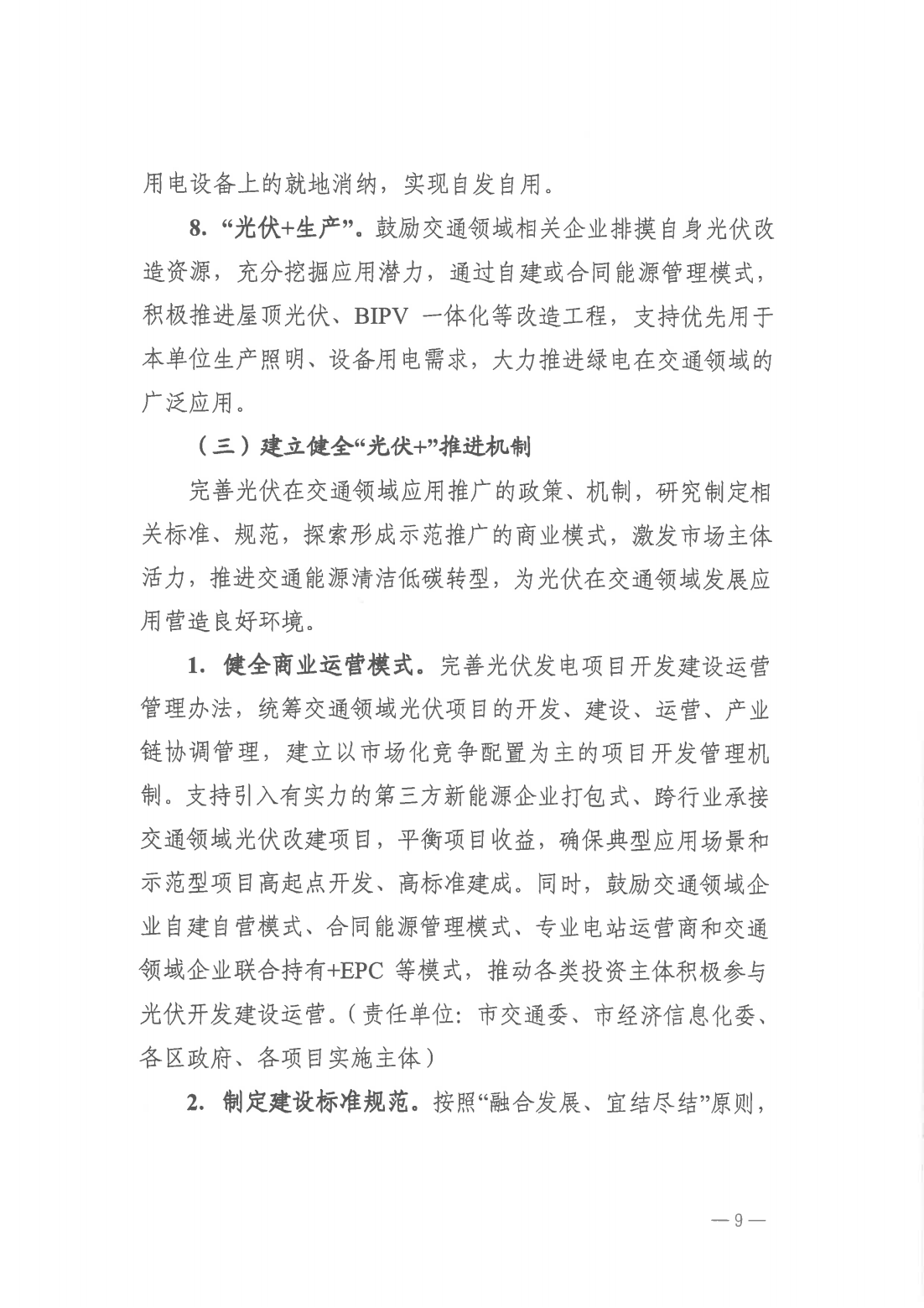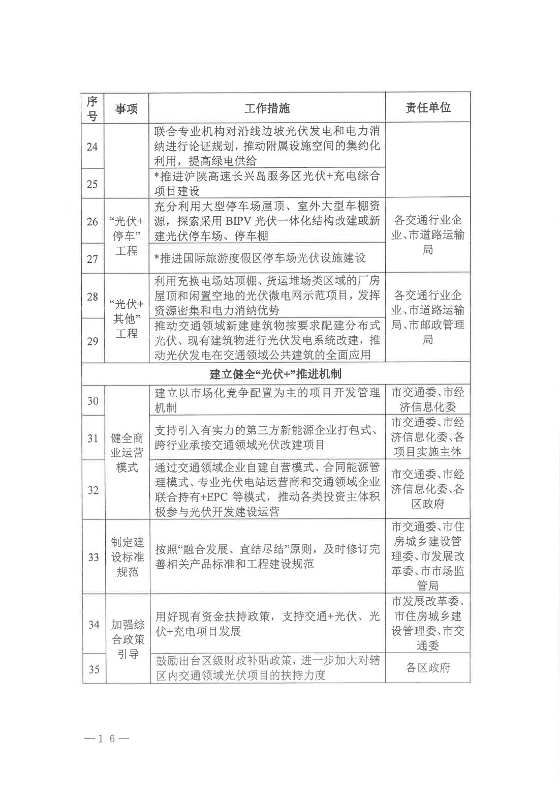 主要任務(wù):推進實施“光伏+”示范工程。其中包括“光伏+地鐵”、“光伏+鐵路”、“光伏+機場”、“光伏+公交”、“光伏+港口”、.“光伏+道路”、“光伏+高速”、“光伏+停車”、“光伏+其他”工程。