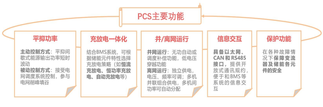 儲能變流器由功率、控制、保護、監(jiān)控等軟硬件組成,其主要功能包括平抑功率、信息交互、保護等,PCS決定了輸出電能質(zhì)量和動態(tài)特性,也很大程度影響電池的使用壽命。