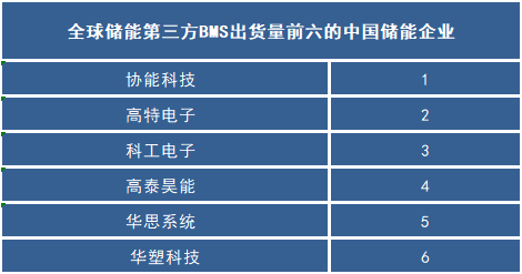 根據(jù)數(shù)據(jù)顯示,2022年度儲能第三方BMS市場應用中,出貨量排名前五的廠商分別是協(xié)能科技、高特電子、科工電子、高泰昊能、華思系統(tǒng)、華塑科技。