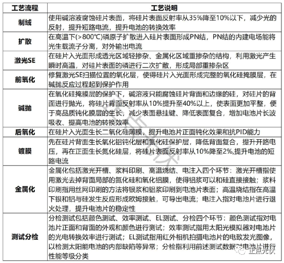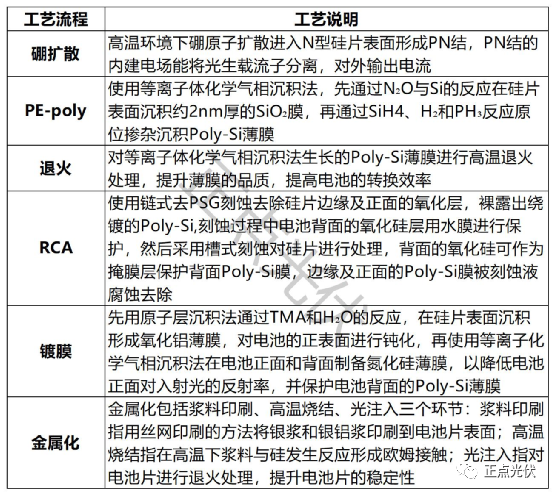 TOPCon電池制備中與PERC電池存在較大差異的工序說明如下: